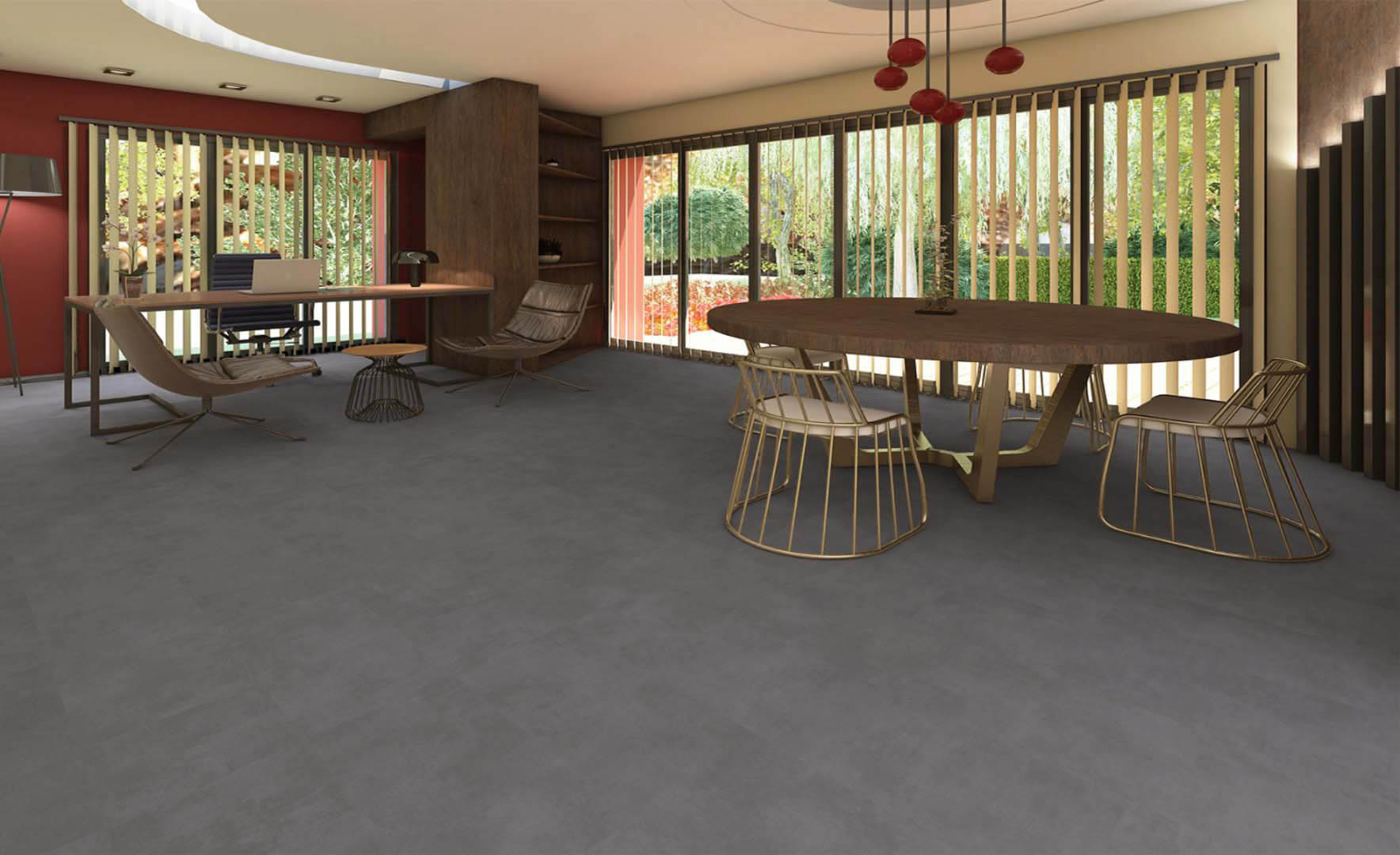 Επαγγελματικό βινυλικό δάπεδο σε λωρίδες. Είναι πολύ ανθεκτικό και έχει τη φυσική όψη από ξύλο, μάρμαρο ή πατητή τσιμεντοκονία.