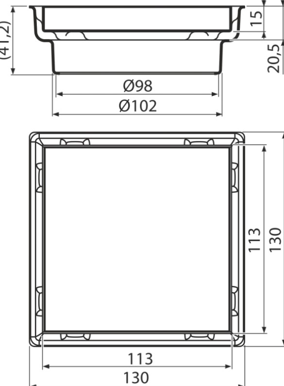Alcaplast Σιφώνι Δαπέδου με Σχάρα Διπλής Όψης 13cmX13cm