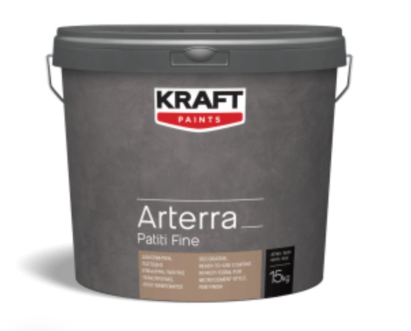 Το Arterra Patiti Fine είναι μία διακοσμητική, παστώδης επικάλυψη, πατητής τεχνοτροπίας, λείου φινιρίσματος ιδανική για τοίχους και δάπεδα. Η προηγμένη σύνθεση ακρυλικών ρητινών ενισχυμένες με ειδικά πρόσθετα νανοτεχνολογίας και αδρανή διαβαθμισμένης κοκκομετρίας, προσδίδει υψηλές μηχανικές αντοχές, μεγάλη επιφανειακή σκληρότητα, άριστη εργασιμότητα και μοναδικό, υψηλής ποιότητας αισθητικό.
