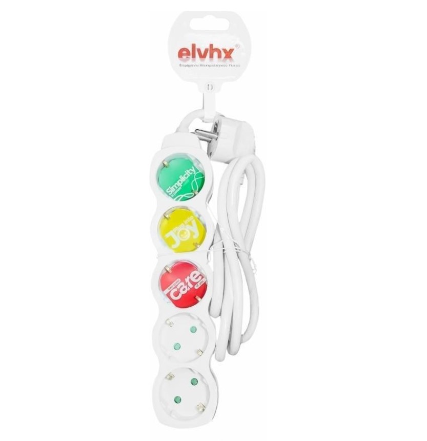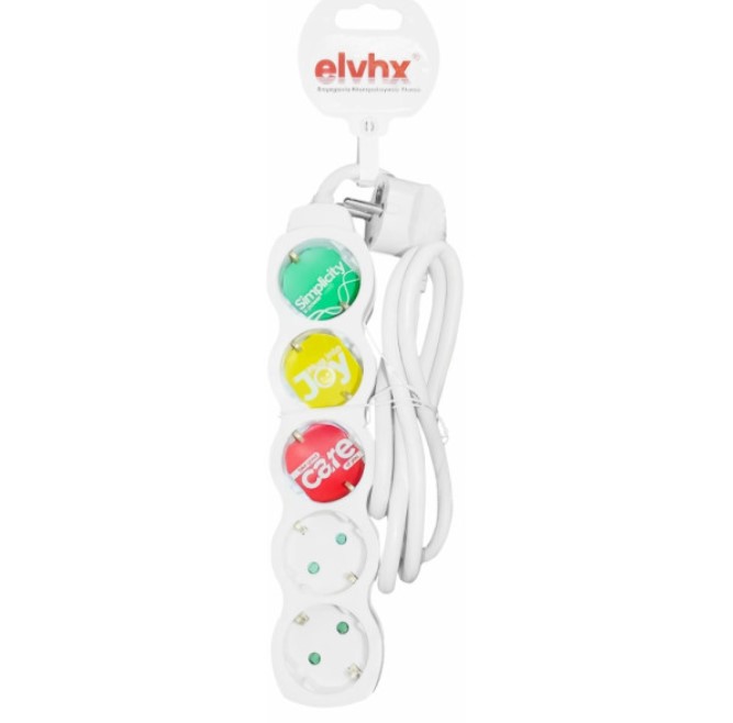 Elvhx Πολύπριζο 5 Θέσεων με Καλώδιο 1.5m Λευκό
