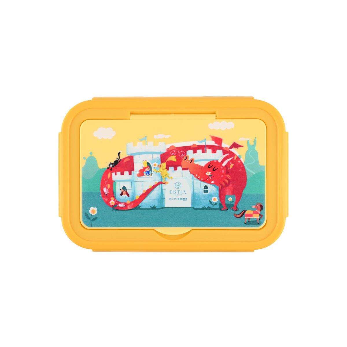 Estia Παιδικό Φαγητοδοχείο SAVE THE AEGEAN 900ml με 2 Ανοξείδωτες Θήκες FORTRESS DRAGON