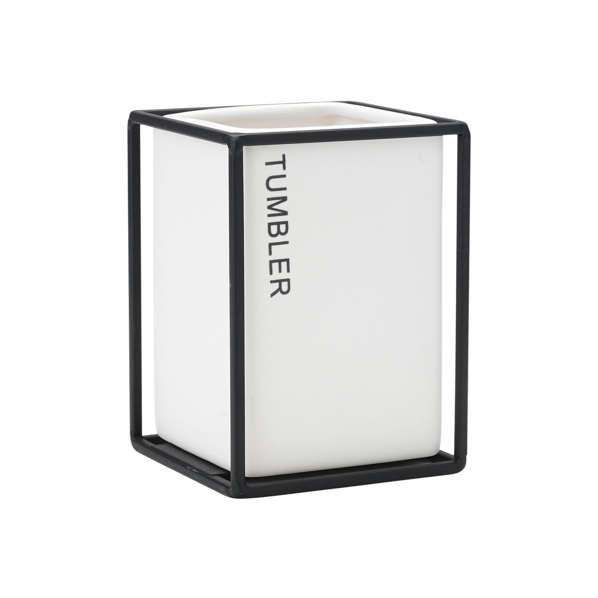 Estia Ποτηράκι Μπάνιου Cage Κεραμικό Λευκό Με Μεταλλικό Πλαίσιο