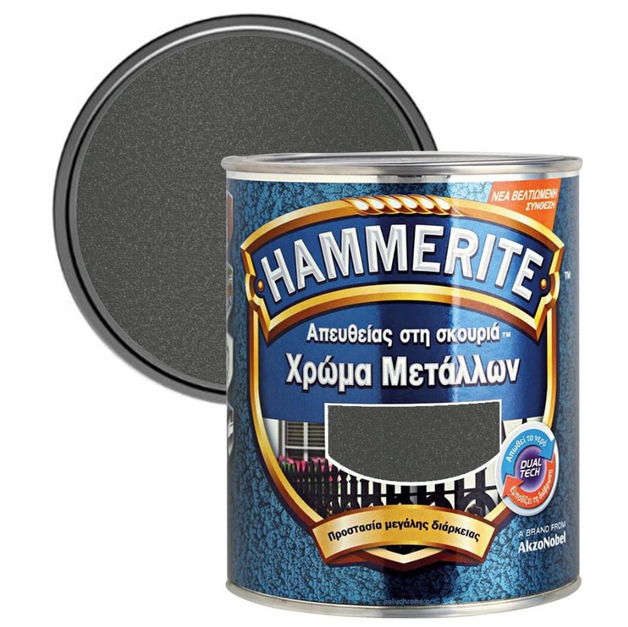 Τα χρώματα μετάλλων Hammerite  έχουν ειδική σύνθεση DUALTECH που δημιουργεί μια αόρατη ανθεκτική ασπίδα κατά της σκουριάς που προκαλείται από υγρασία, διατηρώντας ένα όμορφο φινίρισμα για μεγαλύτερο χρονικό διάστημα.