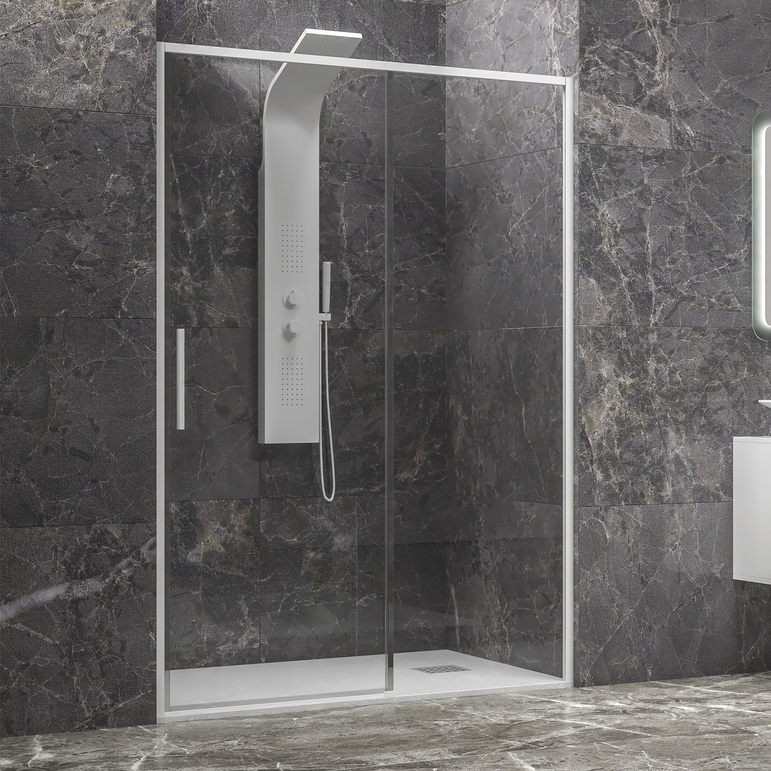 Karag Καμπίνα Από Τοίχο σε Τοίχο με Διάφανο Κρύσταλλο LEA 400 White