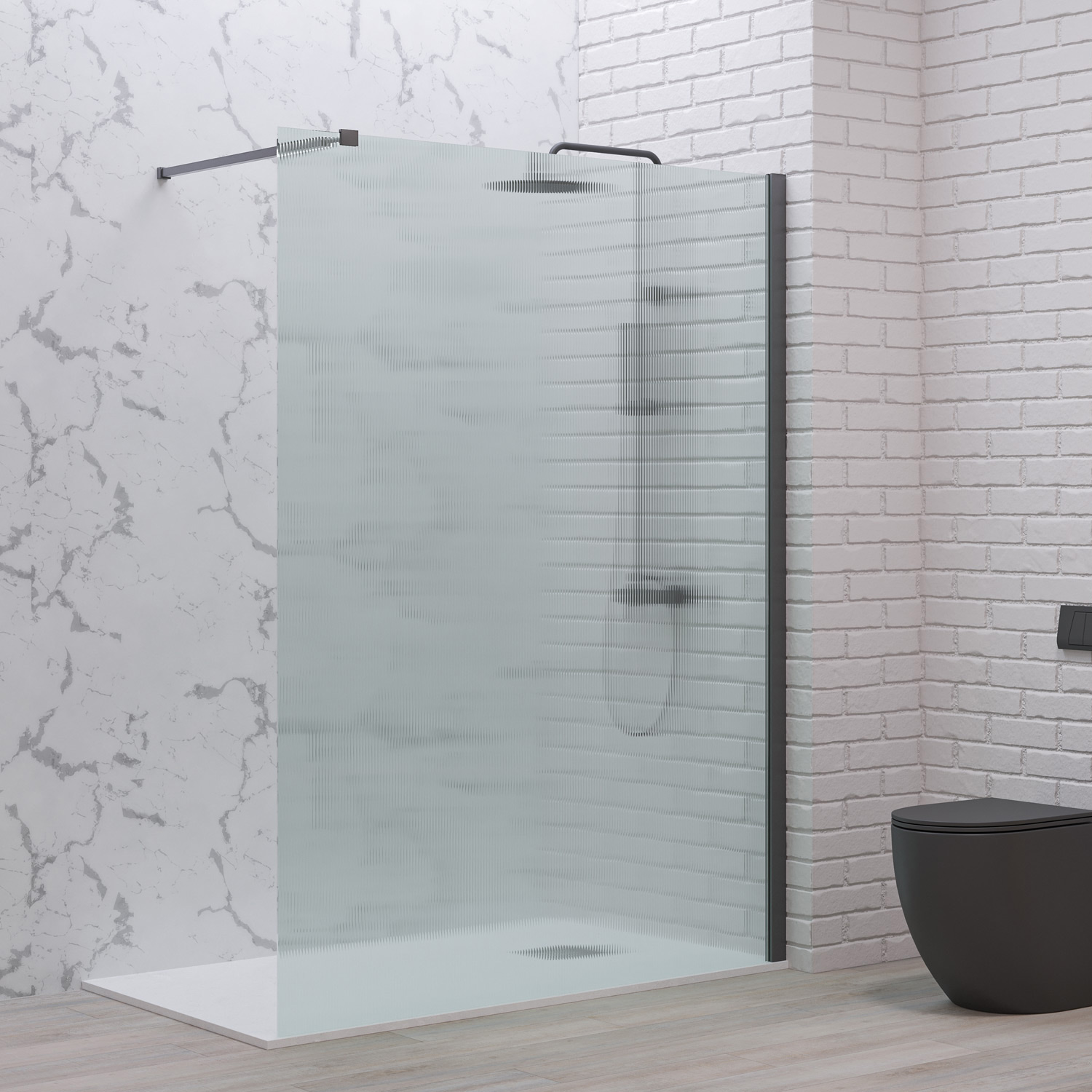 Karag Σταθερό Διαχωριστικό Ντουζιέρας με flute Κρύσταλλο WALKIN 1 Gun Metal 120x200cm
