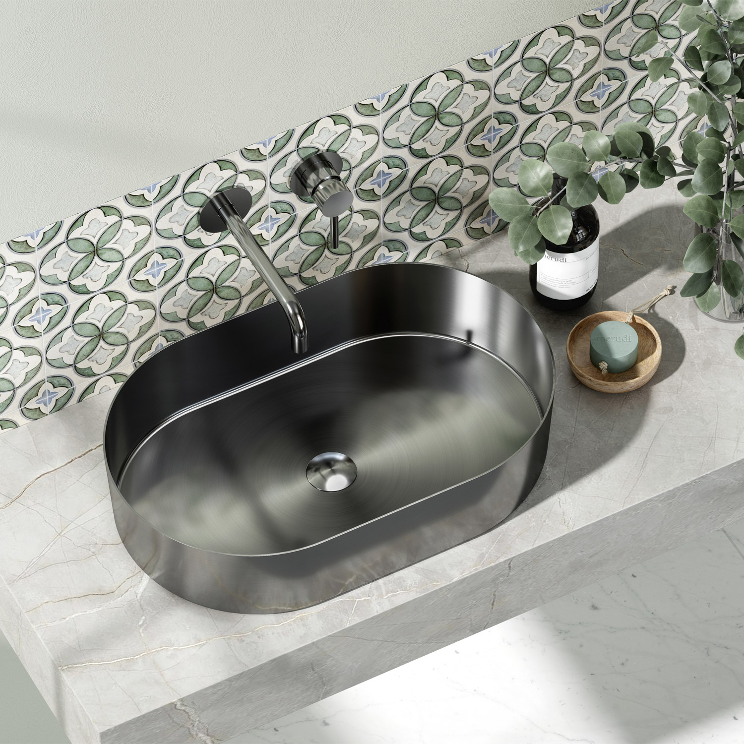 Karag Νιπτήρας Επικαθήμενος Ανοξείδωτος Jupiter Gun Metal Bb6808-Bgm 55X35X11Cm