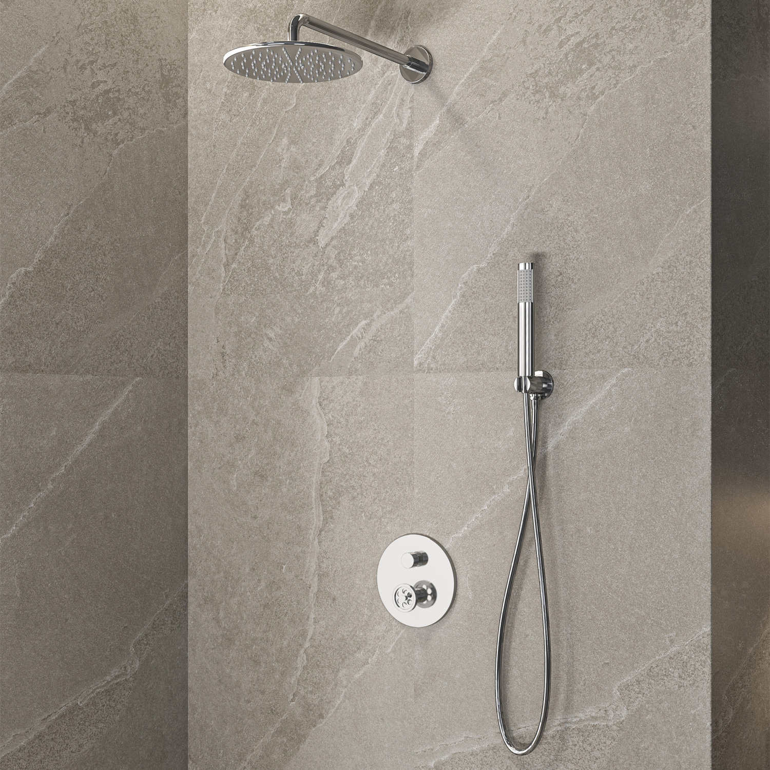 • Μεταλλική παροχή ντους & βάση στήριξης