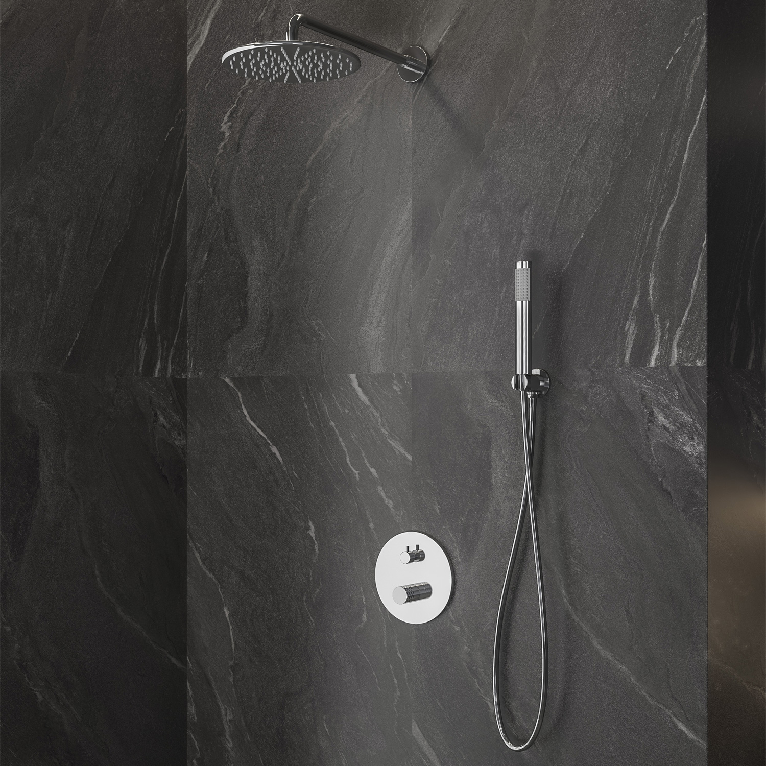 • Μεταλλική παροχή ντους & βάση στήριξης