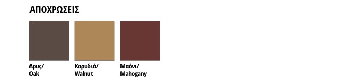 • Αποχρώσεις: Πολλαπλές επιλογές ανάλογα με το είδος του ξύλου