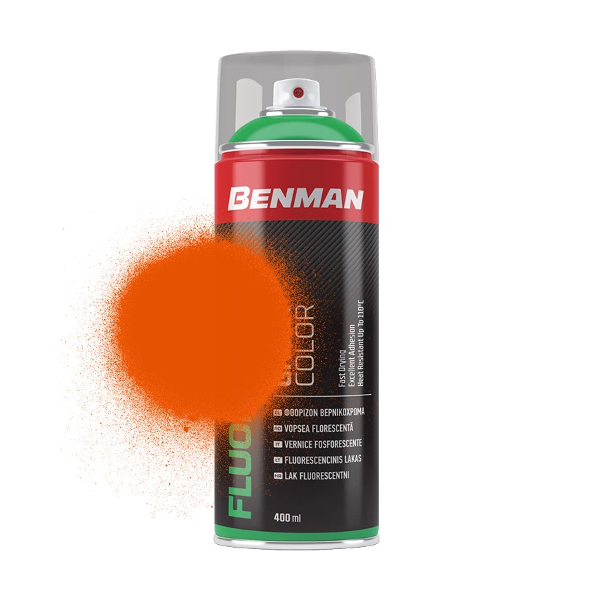 Benman Σπρέι Βαφής Ακρυλικό Φθορίζων Λάκα Κόκκινο-Πορτοκαλί 400ml
