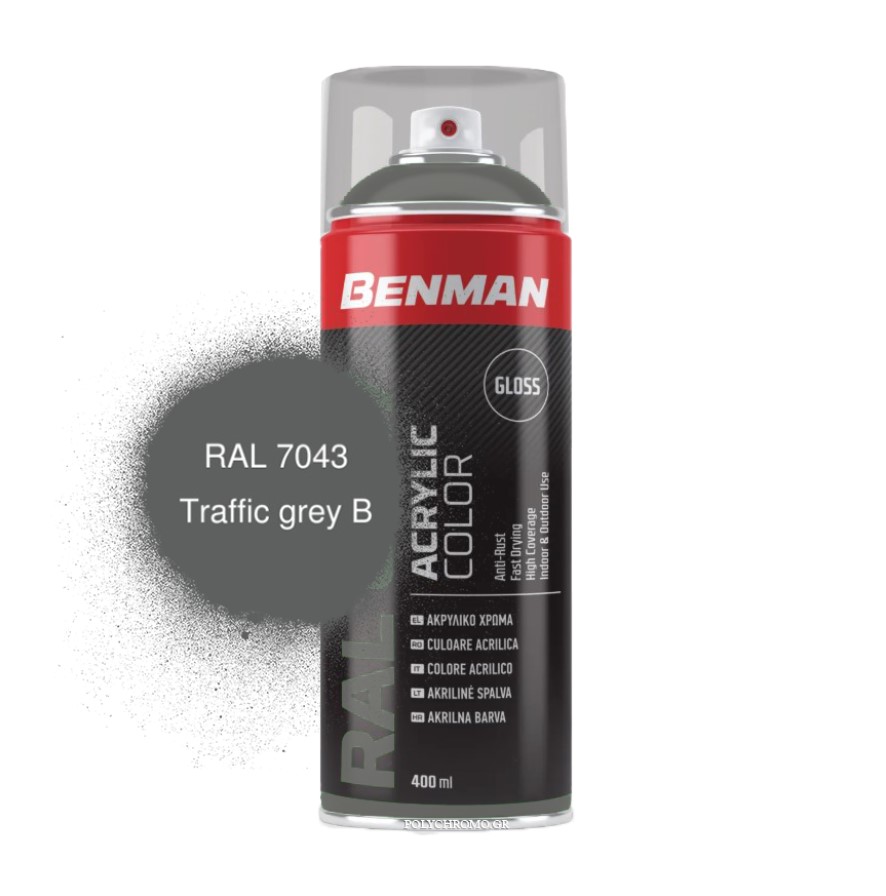 Benman Σπρέι Βαφής Ακρυλικό Γυαλιστερό Γκρι Σκούρο Ral 7043 400ml