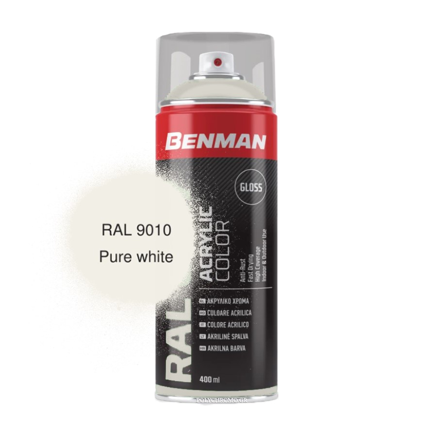 Benman Σπρέι Βαφής Ακρυλικό Γυαλιστερό Λευκό Ral 9010 400ml