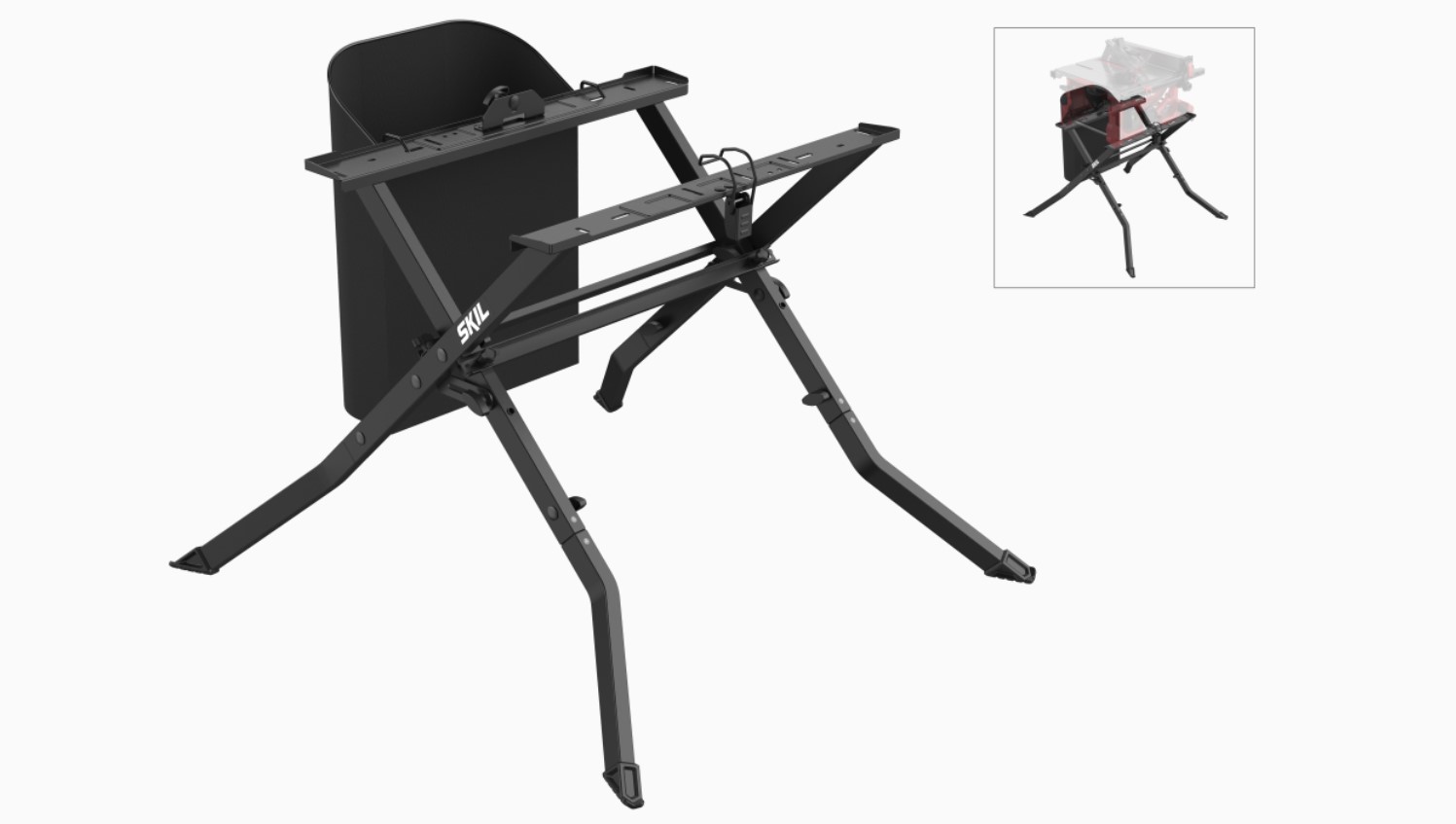 Μπορείτε εύκολα να στηρίξετε σταθερό δισκοπρίονο SKIL στη βάση και να το ρυθμίσετε στο ιδανικό ύψος σας χωρίς τη χρήση εργαλείων. Και μετά την ολοκλήρωση της εργασίας, απλά αποσυνδέστε το σταθερό δισκοπρίονο και διπλώστε τη βάση σε πιο συμπαγές μέγεθος για εύκολη μεταφορά και αποθήκευση.