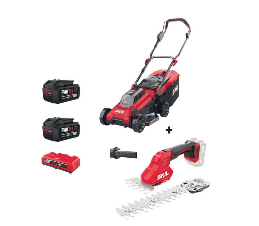 Skil D00517 Σετ Χλοοκοπτική Μηχανή & Πολυεργαλείο Κήπου Με Μπαταρία Και Φορτιστή