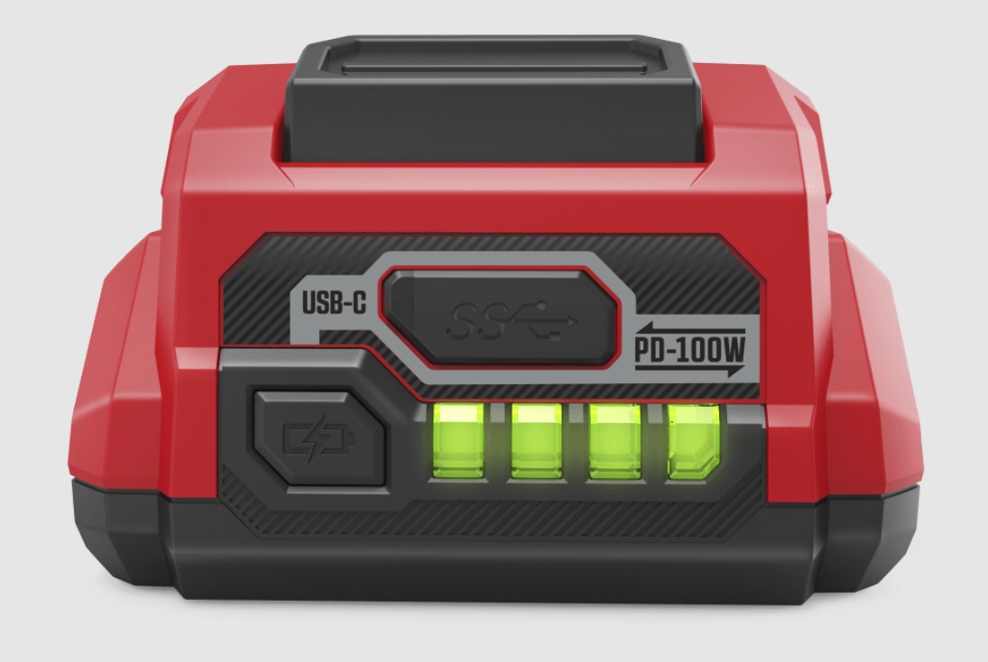 Η νέα μπαταρία PWRASSIST™ 3142 (2,0 Ah) διαθέτει μια ενσωματωμένη θύρα USB-C 100 W.