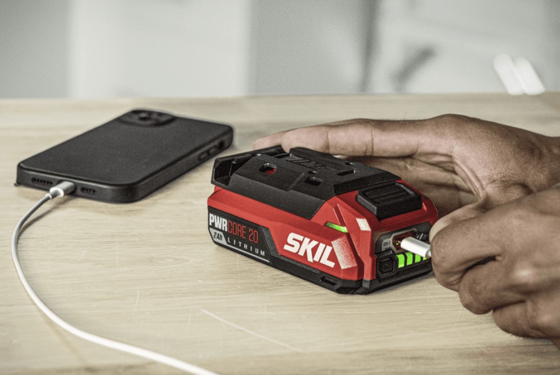 Η θύρα USB-C εξασφαλίζει αμφίδρομη γρήγορη φόρτιση τόσο της ίδιας όσο και ενός μεγάλου αριθμού κινητών συσκευών, συμπεριλαμβανομένων τηλεφώνων, tablet, ακόμη και φορητών υπολογιστών (laptop). Έχετε την επιλογή να φορτίσετε την μπαταρία χρησιμοποιώντας έναν στάνταρ φορτιστή USB-C, αλλά επίσης τους υπάρχοντες φορτιστές SKIL PWRCORE 20™, που είναι 100 % συμβατοί.