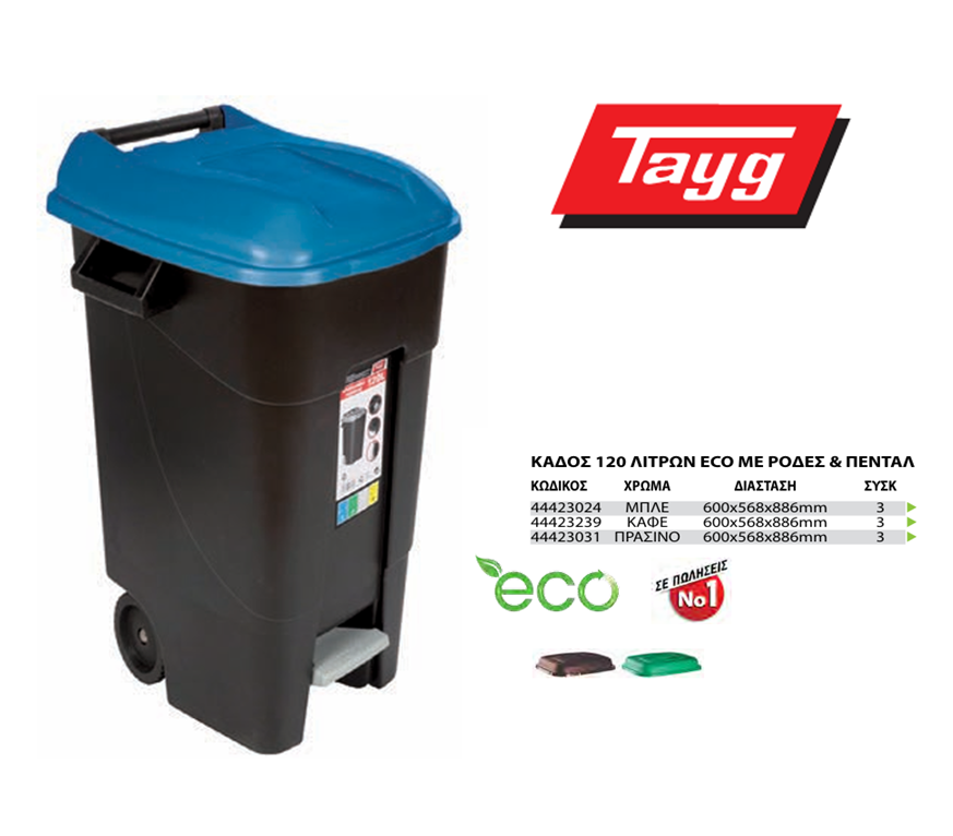 TAYG ECO ΚΑΔΟΣ 120 ΛΙΤΡΩΝ ΜΕ ΠΕΝΤΑΛ ΚΑΙ ΡΟΔΕΣ - MΠΛΕ-ΧΡΩΜΑ