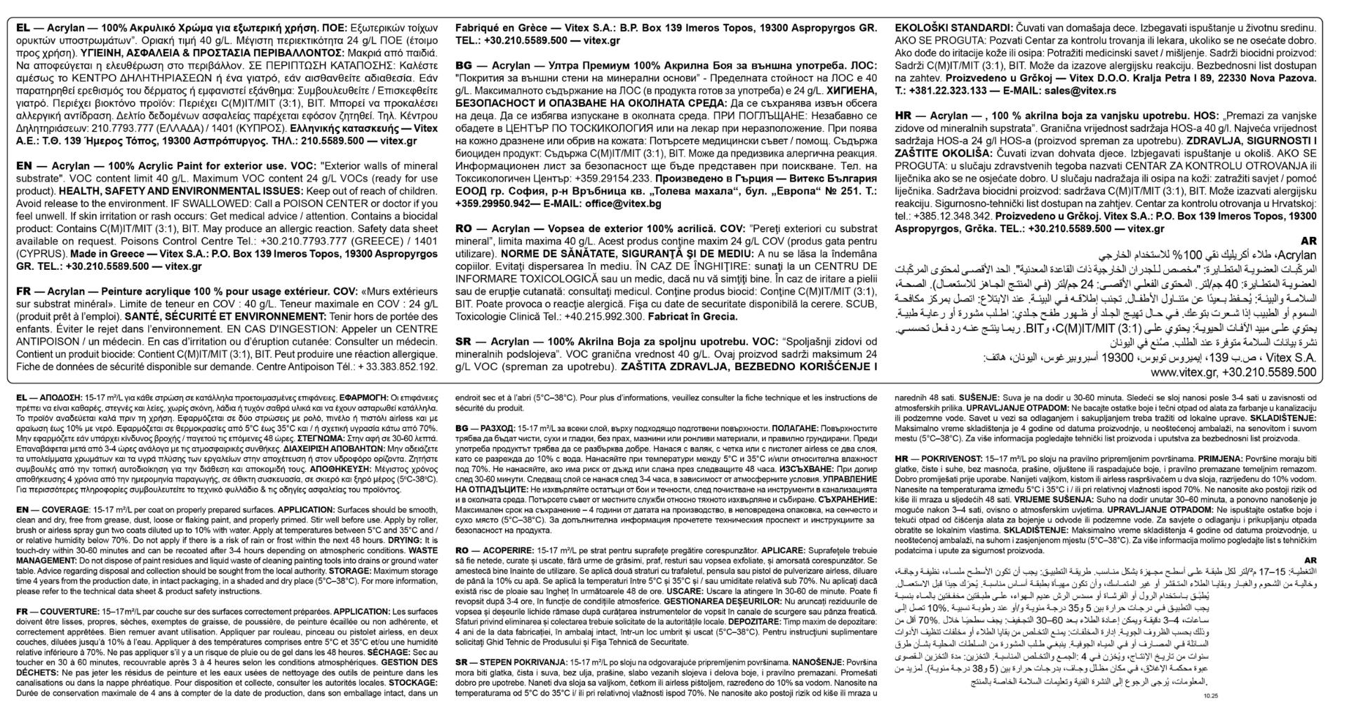 Vitex Acrylan 100% Ακρυλικό Χρώμα Εξωτερικής Χρήσης Νερού Λευκό Ματ