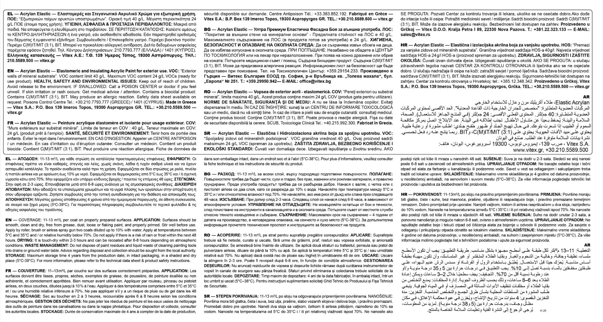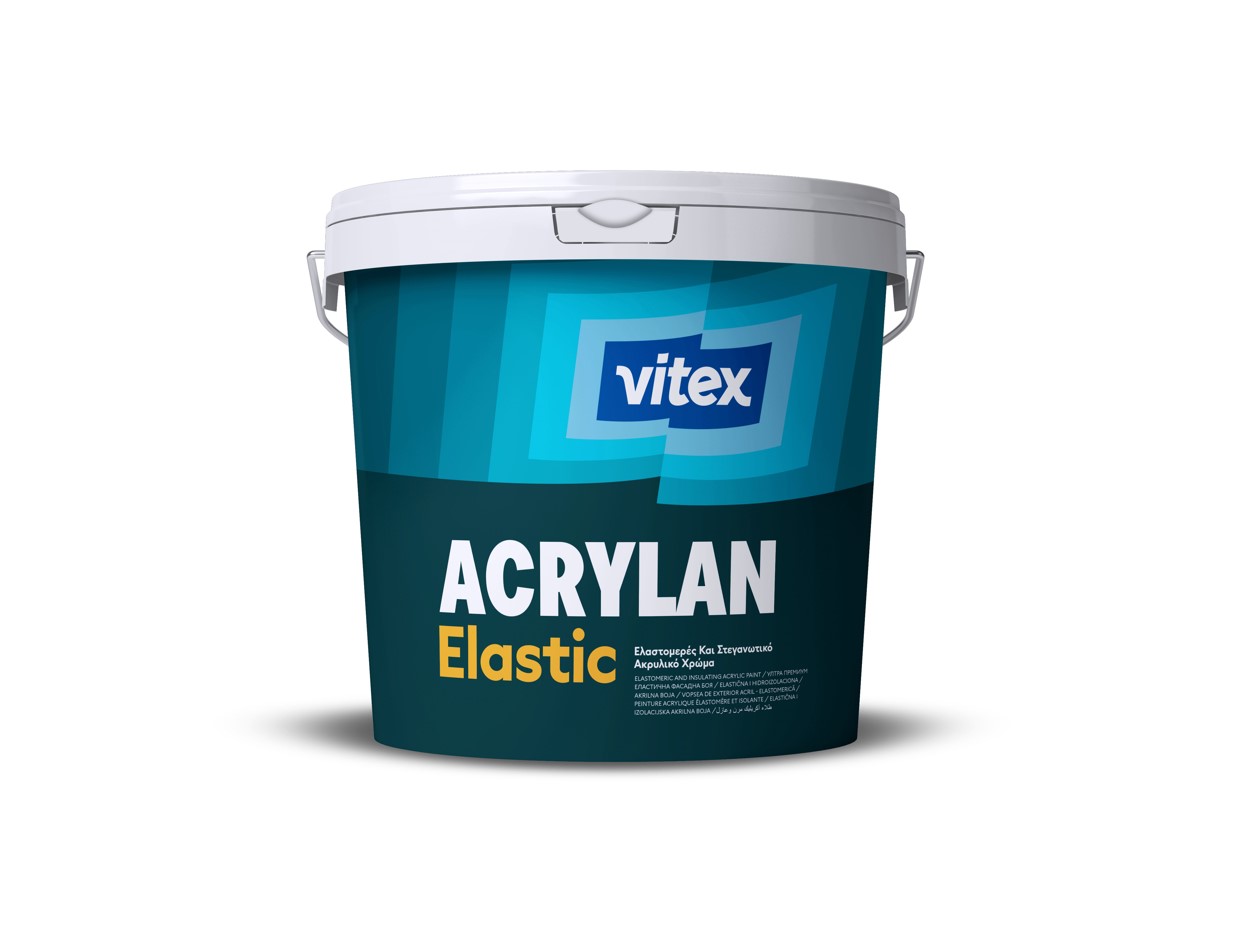 Vitex Acrylan Elastic Ελαστομερές Στεγανωτικό Χρώμα Νερού Εξωτερικών Καθέτων Επιφανειών Λευκό Ματ