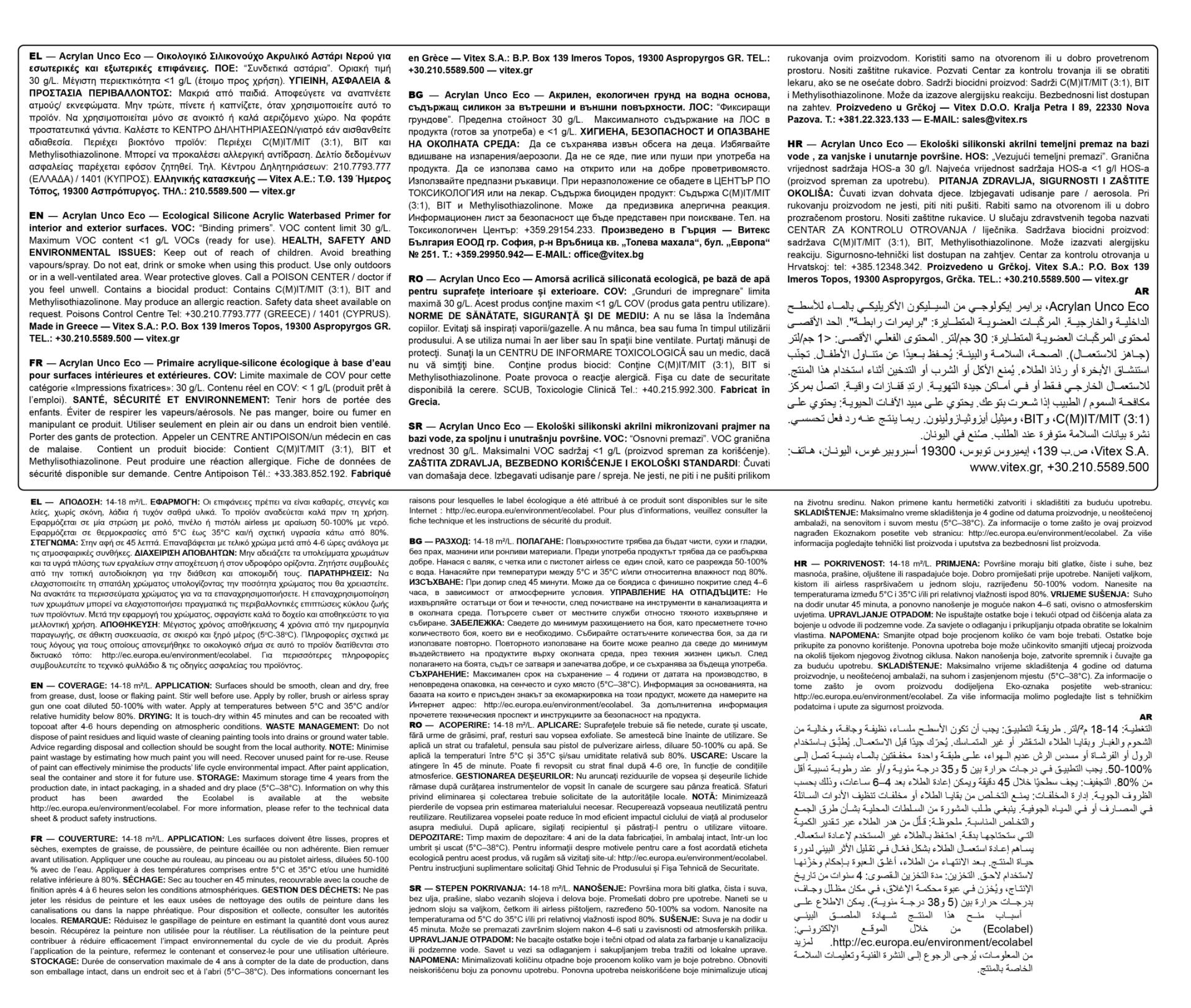 Vitex Acrylan Unco Eco Οικολογικό Σιλικονούχο Μικρονιζέ Ακρυλικό Αστάρι Νερού 5lt