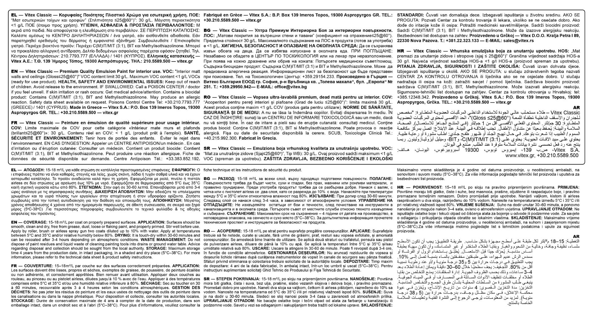 Vitex Classic Πλαστικό Χρώμα Κορυφαίας Ποιότητας Λευκό Ματ