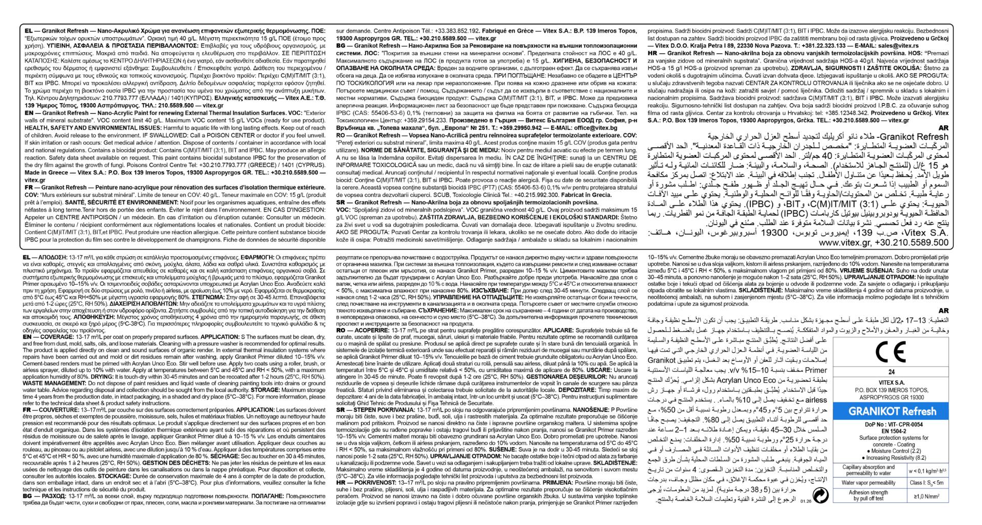 Vitex GRANIKOT REFRESH Nano-Ακρυλικό Χρώµα Εξωτερικής Θερµοµόνωσης