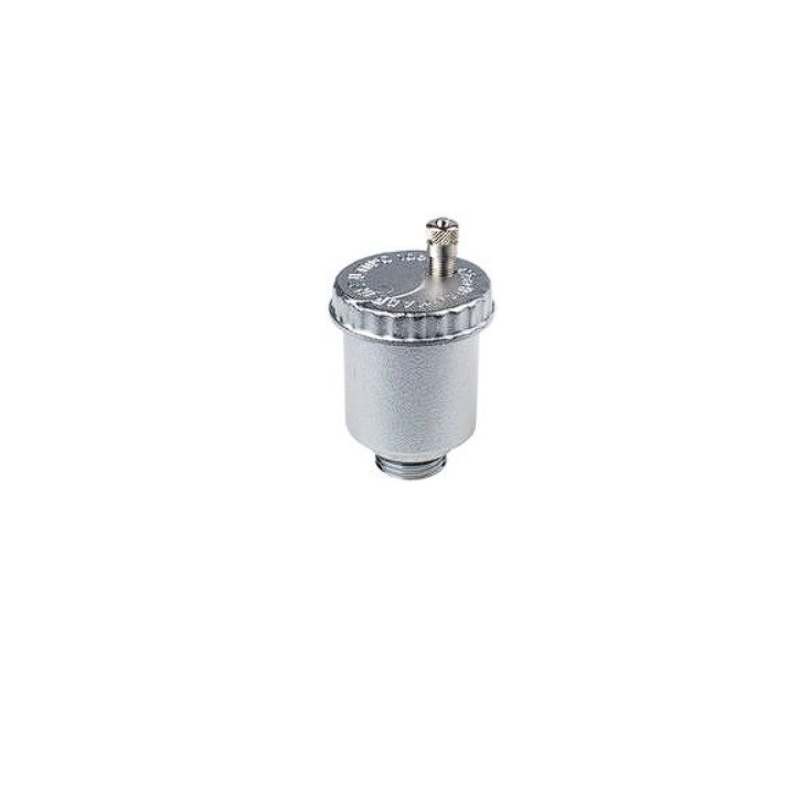 Αυτόματο εξαεριστικό δικτύου 1/2" για εγκαταστάσεις θέρμανσης και υδραυλικών συστημάτων. Τοποθετείται στα υψηλότερα σημεία του δικτύου και απομακρύνει αυτόματα τον αέρα που συγκεντρώνεται μέσα στους σωλήνες ή στα σώματα θέρμανσης. Η λειτουργία του βασίζεται σε μηχανισμό με πλωτήρα που ανοίγει τη βαλβίδα όταν συγκεντρώνεται αέρας και την κλείνει όταν γεμίσει ξανά με νερό, εξασφαλίζοντας σωστή κυκλοφορία στο σύστημα. Συμβάλλει στη μείωση θορύβου, στην αποφυγή αεροπαγίδων και στη σωστή λειτουργία της εγκατάστασης θέρμανσης.