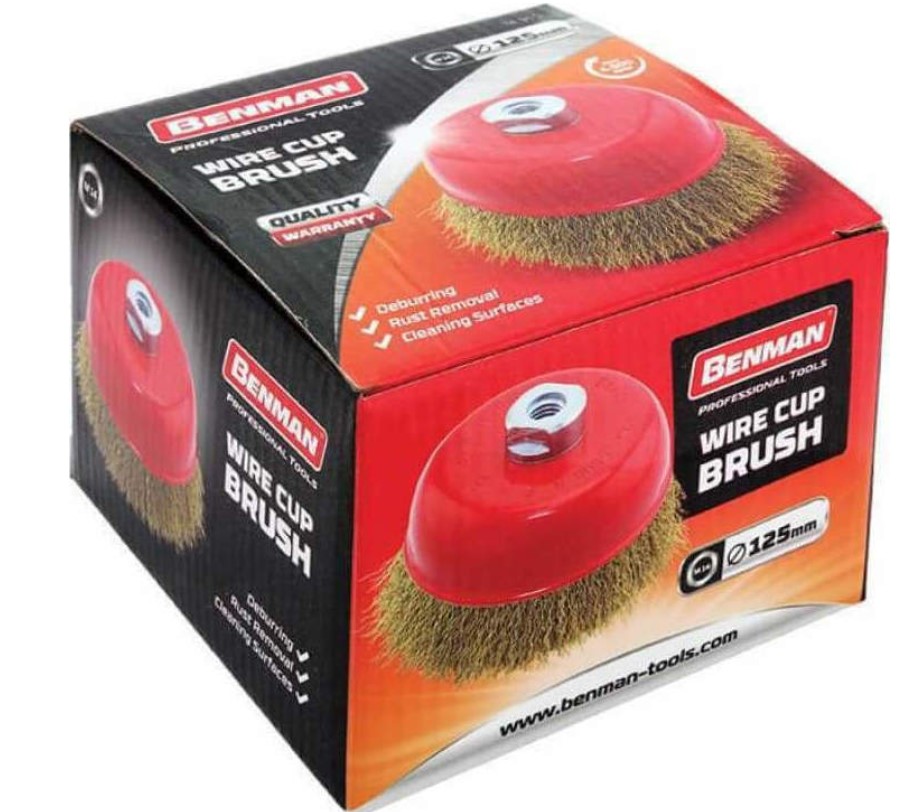 Συρματόβουρτσα τύπου καμπάνα Benman διαμέτρου Φ100 με σπείρωμα M14, κατάλληλη για χρήση σε γωνιακούς τροχούς. Ιδανική για καθαρισμό μεταλλικών επιφανειών, απομάκρυνση σκουριάς, χρωμάτων και υπολειμμάτων συγκόλλησης. Προσφέρει αξιόπιστη απόδοση και ανθεκτικότητα σε καθημερινές και επαγγελματικές εργασίες.