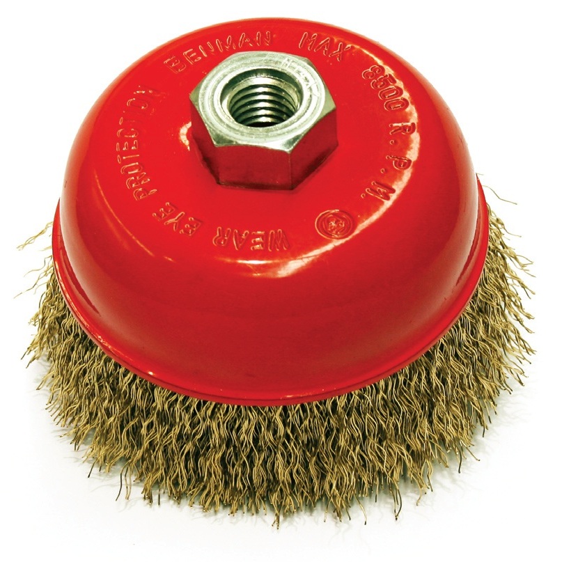 Συρματόβουρτσα τύπου καμπάνα Benman με σπείρωμα M14, κατάλληλη για χρήση σε γωνιακούς τροχούς. Ιδανική για καθαρισμό μεταλλικών επιφανειών, απομάκρυνση σκουριάς, χρωμάτων και υπολειμμάτων συγκόλλησης. Η ανθεκτική κατασκευή της εξασφαλίζει αποτελεσματική απόδοση και μεγάλη διάρκεια ζωής σε απαιτητικές εργασίες.