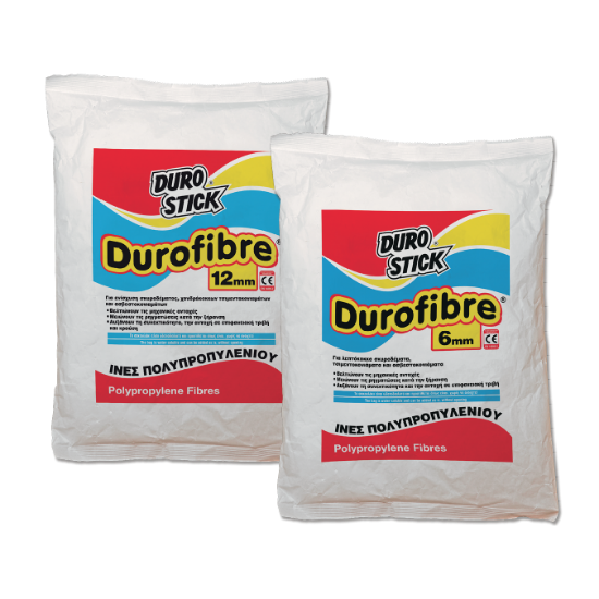 Σημείωση: Η προσθήκη ινών DUROFIBRE 6mm είναι απαραίτητη σε κονιάματα των οποίων τα αδρανή είναι μικρότερα των 10mm. Η προσθήκη ινών DUROFIBRE 12mm είναι απαραίτητη σε εκτοξευόμενο ή απλό σκυρόδεμα, με μέγεθος κόκκου αδρανών μεγαλύτερο των 10mm.