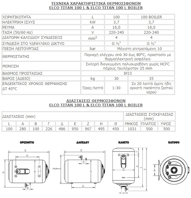 Elco Titan Θερμοσίφωνας 100lt 3.7kW