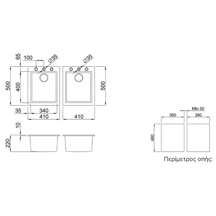 Elleci Νεροχύτης Γρανίτη Quadra 200