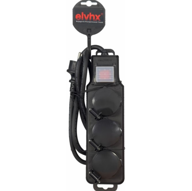 Elvhx Πολύπριζο 3θ Στεγανο Ιρ44 + Καπακι+διακ.+καλ.1,4μ 3g 1.5mm2 Μαύρο