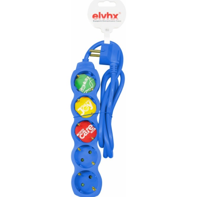 Elvhx Πολύπριζο 5θ X16a +καλ.1,5μ 3g 1.5mm2 Ip20 Μπλέ