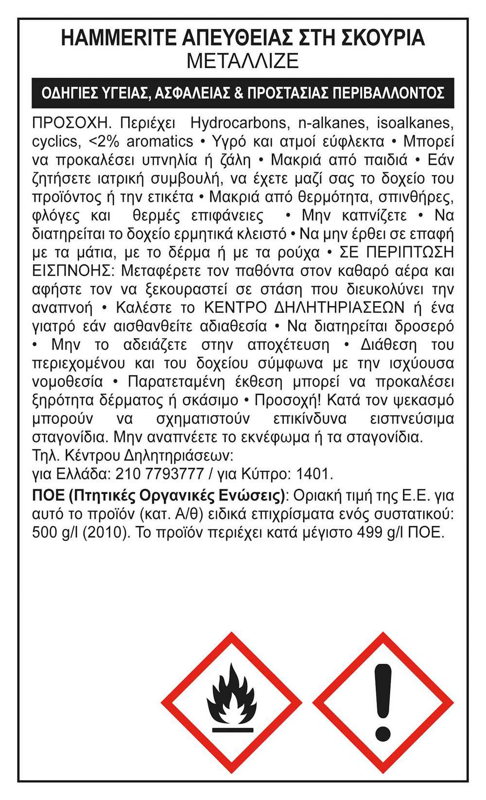 Το HAMMERITE ΑΠΕΥΘΕΙΑΣ ΣΤΗ ΣΚΟΥΡΙΑ είναι χρώμα μετάλλων για εφαρμογή απευθείας σε σκουριασμένο μέταλλο. Η ειδική του σύνθεση περιλαμβάνει υπόστρωμα και τελικό χρώμα σε μία συσκευασία, εξασφαλίζοντας προστασία για μεγάλο χρονικό διάστημα σε κάθε εσωτερική ή εξωτερική μεταλλική επιφάνεια. Παρέχει λεία στην αφή διακοσμητική εμφάνιση και αντιδιαβρωτική προστασία.Έχει ισχυρή πρόσφυση, μεγάλη σκληρότητα και εξαιρετικό φινίρισμα.