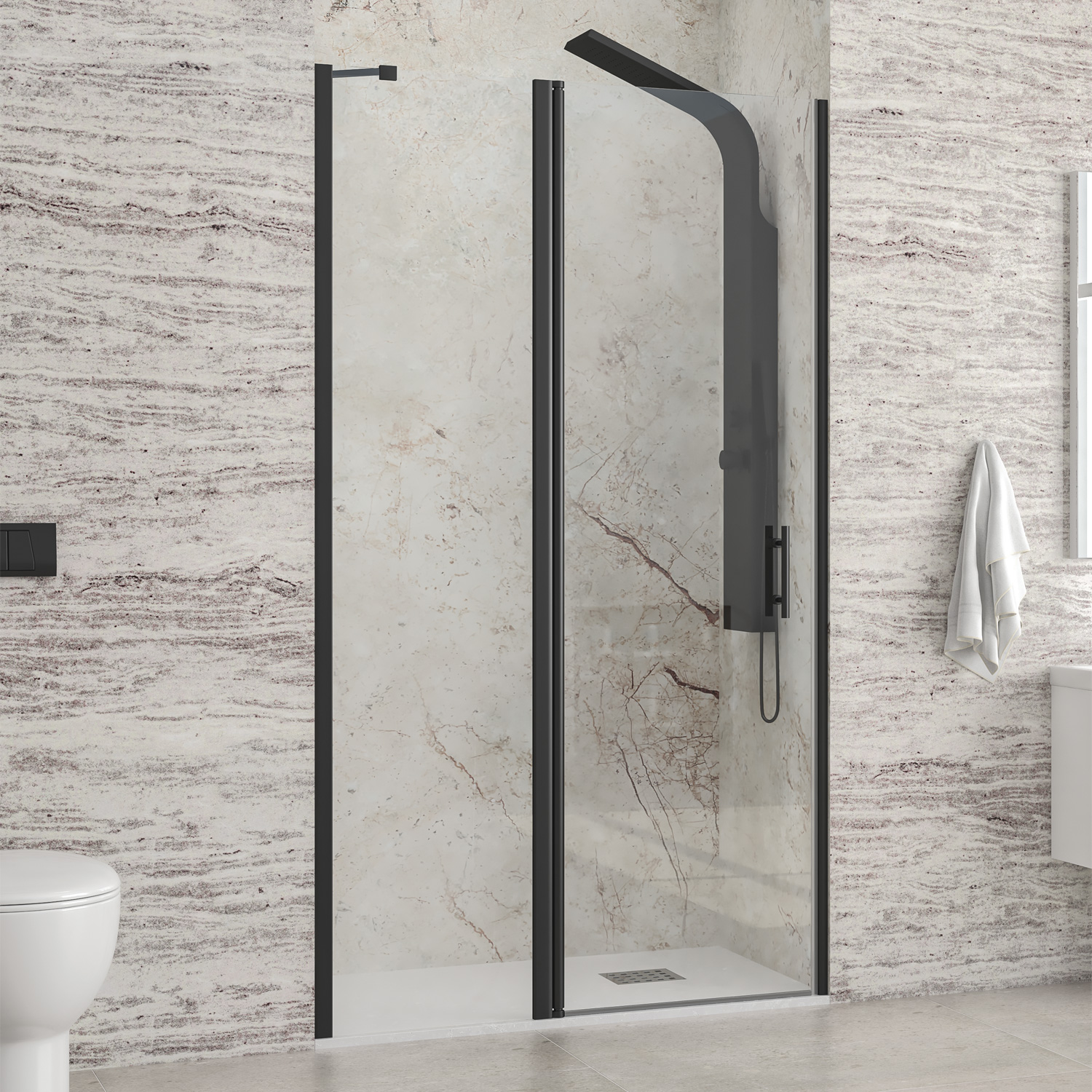 Karag Καμπίνα Από Τοίχο Σε Τοίχο Με Διάφανο Κρύσταλλο Panex 400 Alto Black Karag 85X200Cm