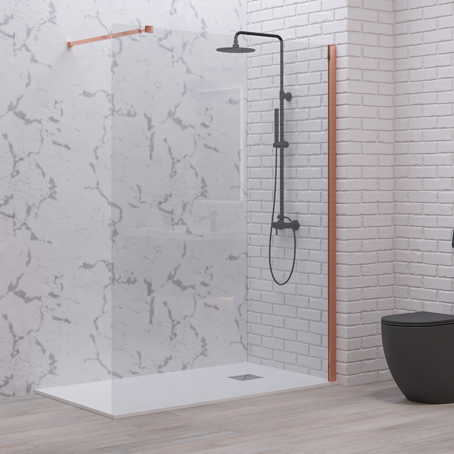 Karag Σταθερό Διαχωριστικό Ντουζιέρας με Διάφανο Κρύσταλλο WALKIN 1 Rose Gold 150x200cm