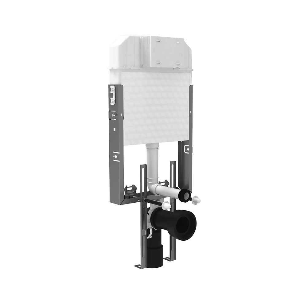 Built-in cistern for suspended basins. Suitable for mounting on a single with support legs.
