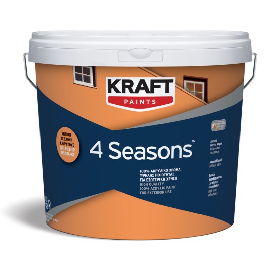 Kraft 4 Seasons 100% Ακρυλικό Χρώμα Υψηλής Ποιότητας για Εξωτερική Χρήση Λευκό Ματ 3lt