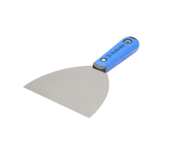 Η σπάτουλα 0523 της εταιρείας Kubala χρησιμοποιείται για εφαρμογή στόκου και άλλων ομοίων υλικών για εργασίες φινιρίσματος. Είναι κατασκευασμένη από ανοξείδωτο ατσάλι, συνεπώς έχει αντοχή στη σκουριά, τα οξέα και στα διαβρωτικά υλικά. Έχει καμπυλωτό κωνικό σχήμα, ενώ η επιφάνειά της έχει λειανθεί και γυαλιστεί για να προσφέρει καλύτερα αποτελέσματα. Το σχήμα της λάμας της δίνει αυξημένη ελαστικότητα, για να μπορεί να απλώνει πολύ λεπτά στρώματα στόκου. Η εργονομική λαβή 2 υλικών προσφέρει άνεση και σταθερότητα.
