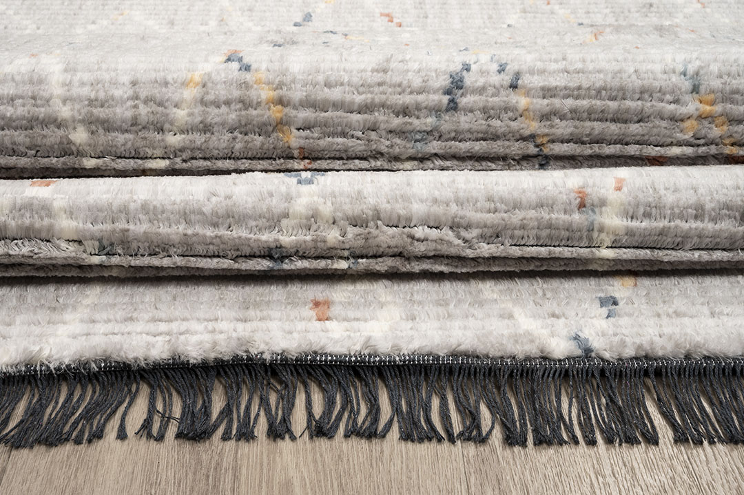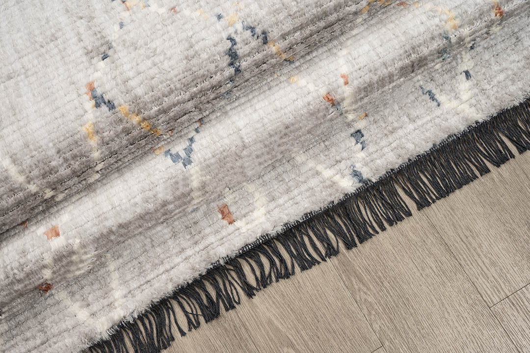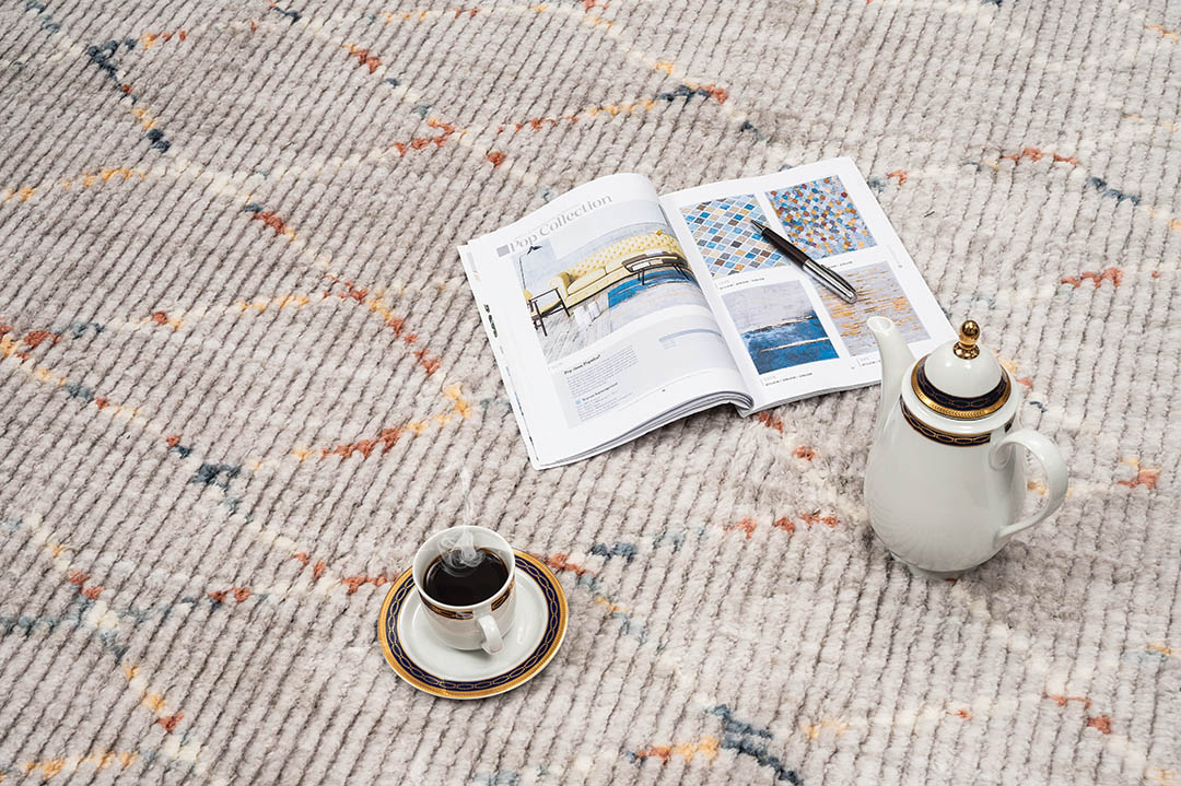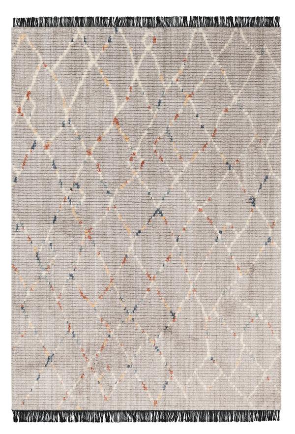 Το πολυεστερικό νήμα τους και τα ζεστά terra χρώματά τους θα δημιουργήσουν μια ιδιαίτερα γλυκιά ατμόσφαιρα στο χώρο που θα στρωθούν. Διαθέσιμo επίσης και σε ηπίους τόνους του λευκού και pastel grey αλλά και του δυναμικού navy blue, το χαλί αυτό μοιάζει με μια σύγχρονη εκδοχή των αφγανικών χειροποίητων νομαδικών χαλιών και φιλοδοξεί να κλέψει τις εντυπώσεις. Επιπλέον , αποκτά προστιθέμενη αξία με το ιδιαίτερο κρόσσι τουπου βγαίνει μέσα από τα νήματα πλέξης του ιδίου του χαλιού .