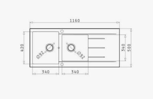 Διάσταση Νεροχύτη 1160x500mm