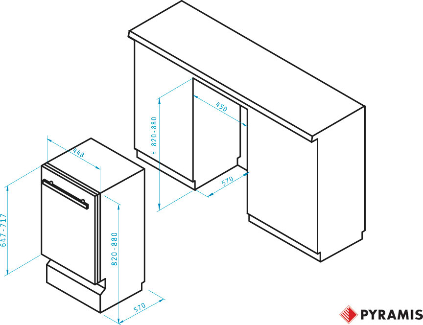 Pyramis DWF 45FI Πλήρως Εντοιχιζόμενο Πλυντήριο Πιάτων για 10 Σερβίτσια Π44.8xY82εκ. Λευκό