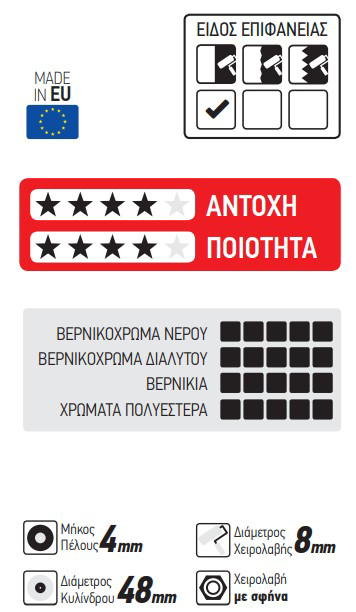 Κατάλληλο για ριπολίνες, βερνίκια/λάκες και ντουκοχρώματα.