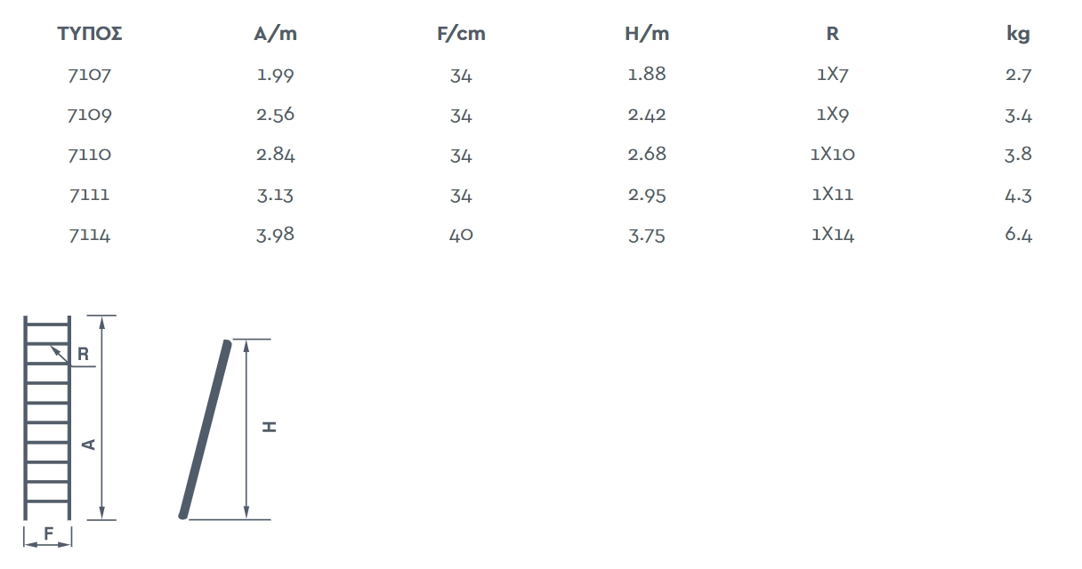 Palbest Europro Σκάλα Αλουμινίου 7114 Μονή 14 Σκαλοπάτια 375cm