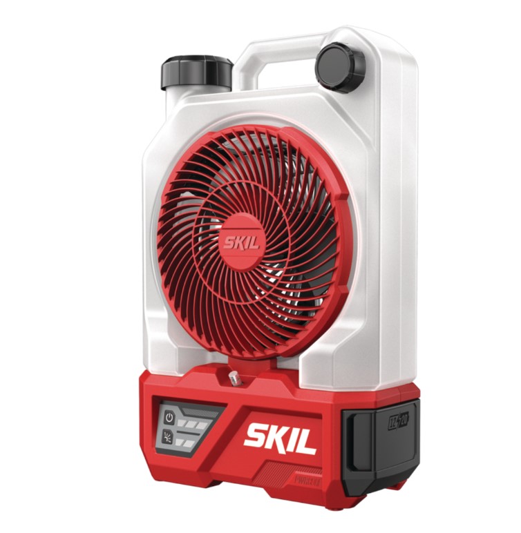 Επαναφορτιζόμενος ανεμιστήρας υδρονέφωσης Skil (Solo) για άμεση αίσθηση δροσιάς. Λειτουργεί με μπαταρία 20V (δεν περιλαμβάνεται).
