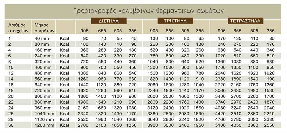 Η ποικιλία τύπων, σε ύψος, πλάτος και μήκος (κατασκευάζονται σε ζυγά  νούμερα μέχρι 40 φέτες) κάνει δυνατή την εκλογή του κατάλληλου θερμαντικού σώματος για κάθε θερμαινόμενο χώρο.