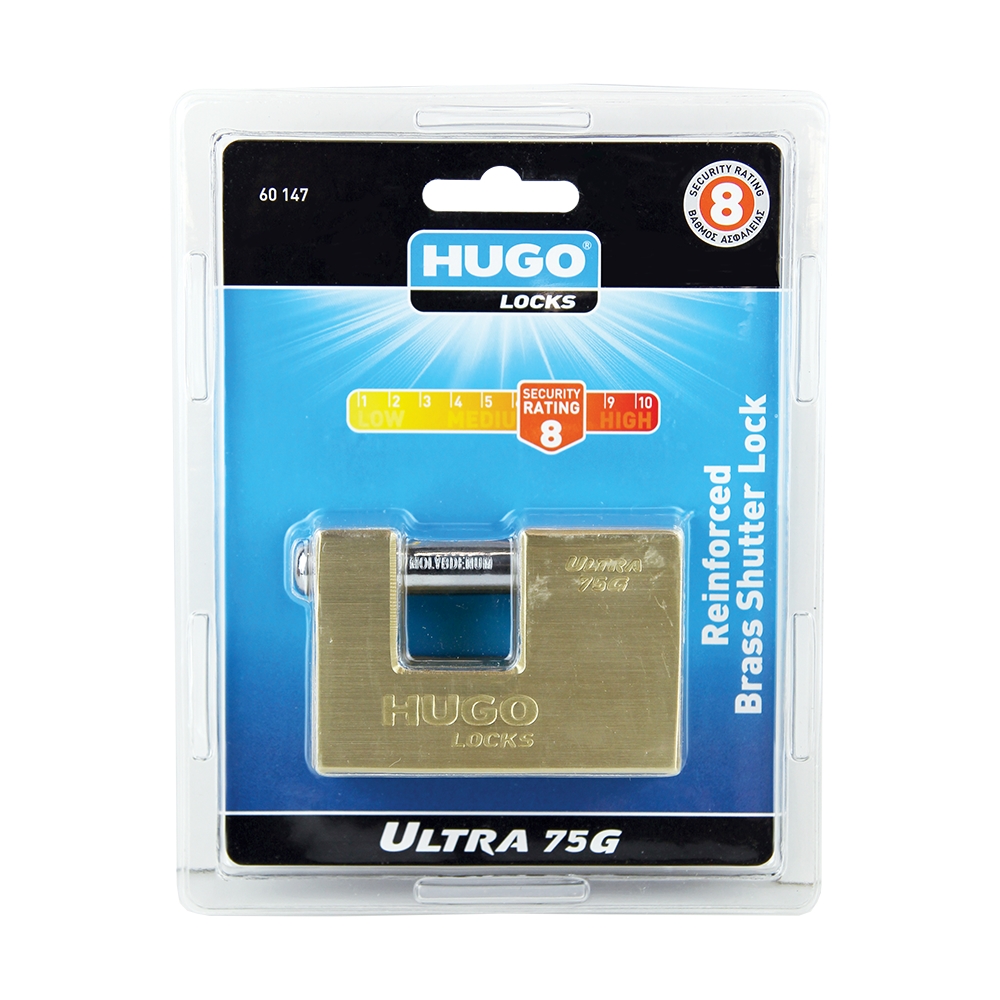 Hugo Locks Ultra 75G Μπρούτζινο Λουκέτο Τάκου με Κλειδί 75mm